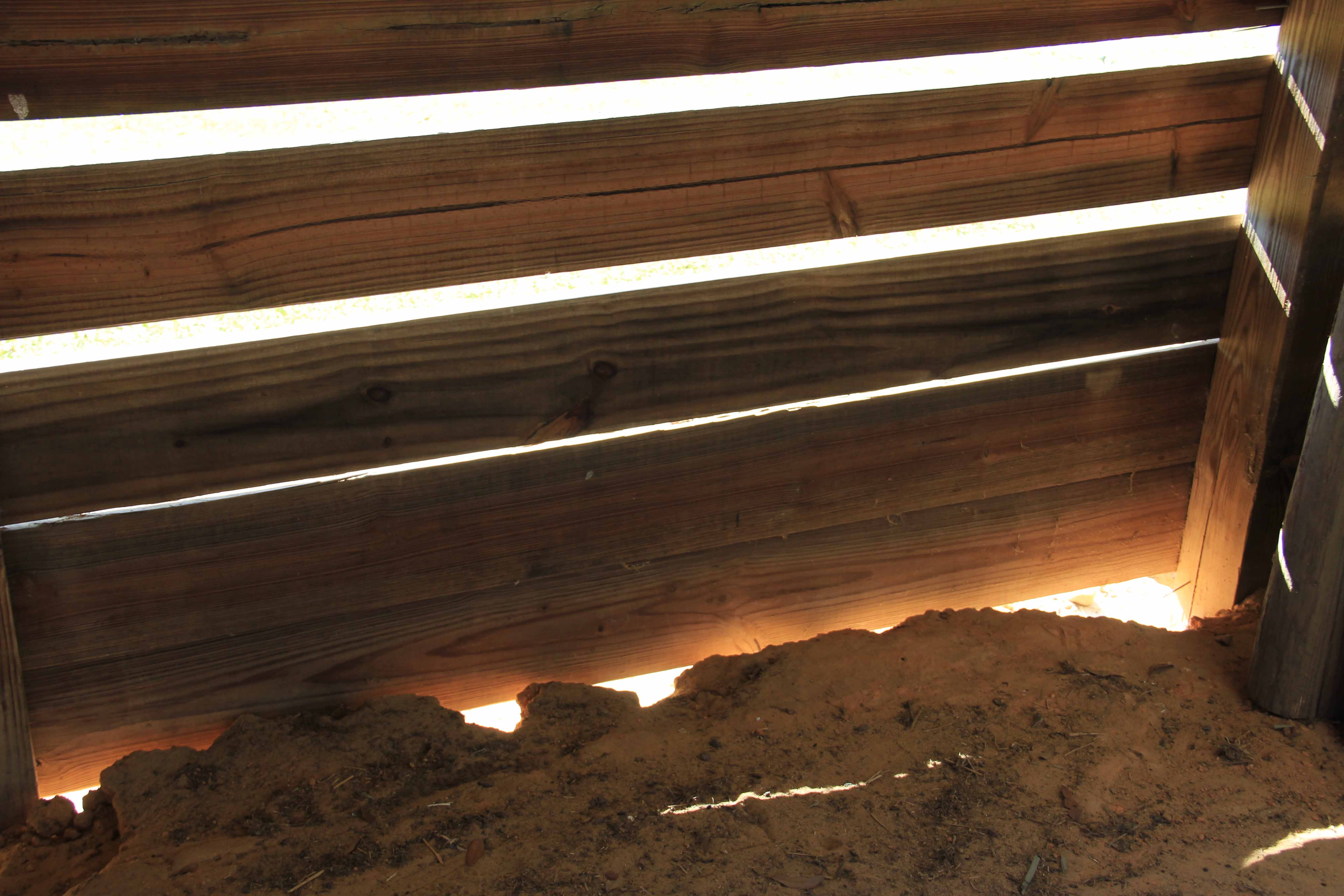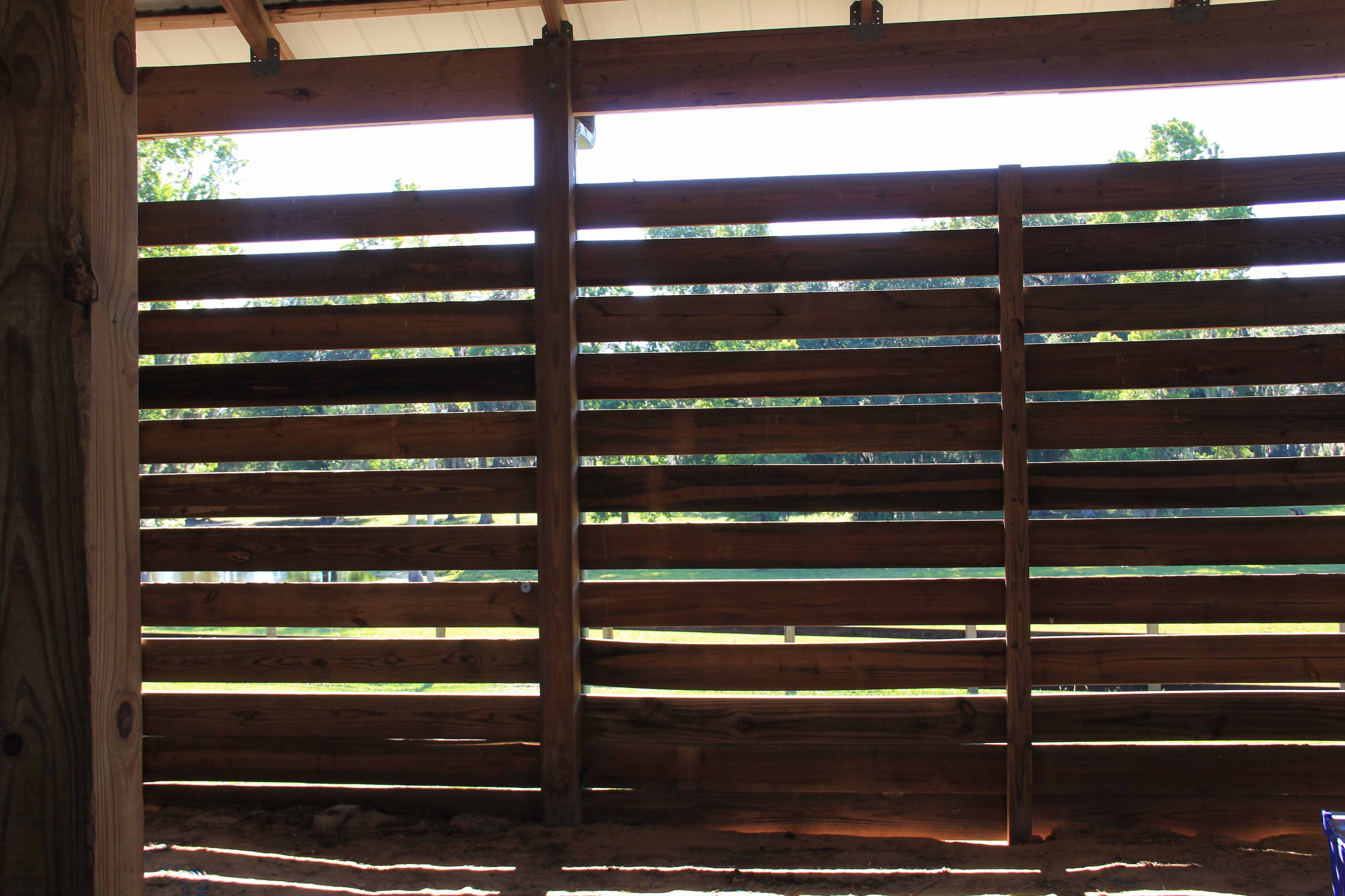 The outside of the barn is one by eight board nailed horizontally with two inch gaps for “ventilation”. We have not been here long enough to experience a rainy season, but the two big blue tarps hung on the inside of the west wall were evidence enough that this “ventilation” strategy had its drawbacks. We will be adding siding, southern pine planks hung vertically, to the outside, but the existing boards will remain and become the interiors of the stalls.