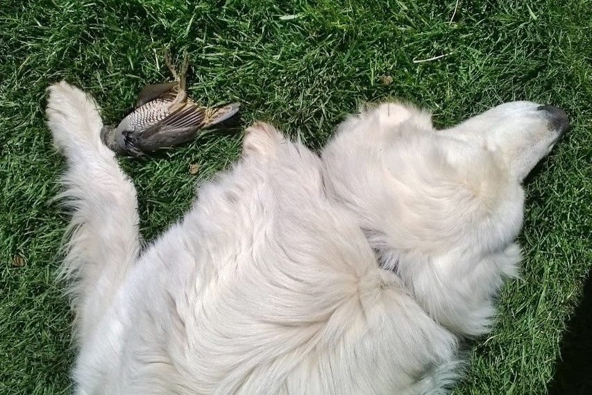 I was working in the office with the dogs laying at my feet when a loud crash vibrated the window. We all jumped and the dogs alarmed, barking loudly. It registered in my mind that it was probably a bird, but the dogs, not waiting for an explanation, went charging out the door at full tilt. Hoping the bird was merely stunned, I scrambled my boots on and following thinking it would need rescue from the dogs. No one was moving. All the dogs were standing at bay and Marco lay with the bird between his paws. He snuffled it and the bird turned its head toward him, took it’s last breath and died. Marco gave it a gentle nudge, as if to be certain, and then lay like this for a very long time.