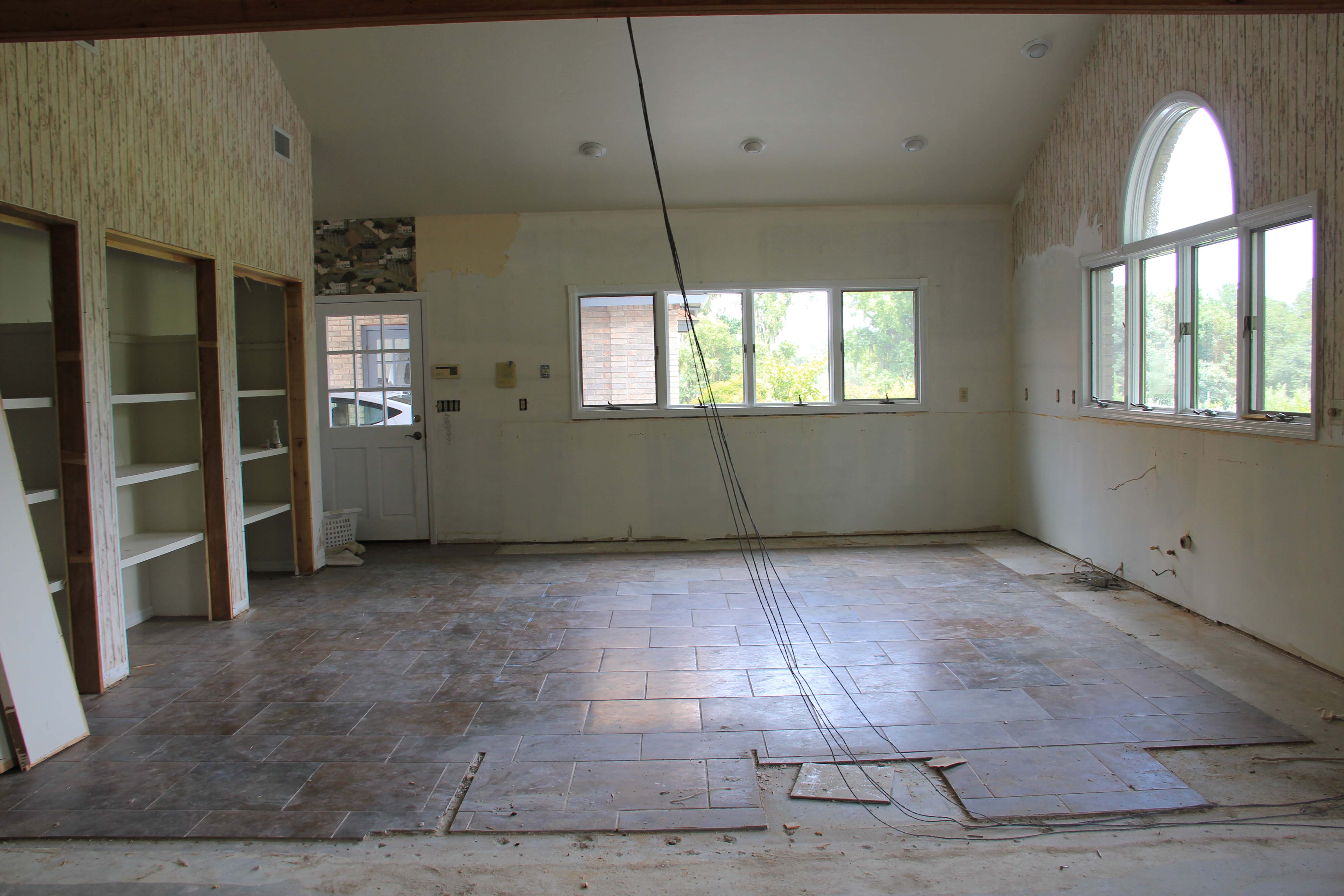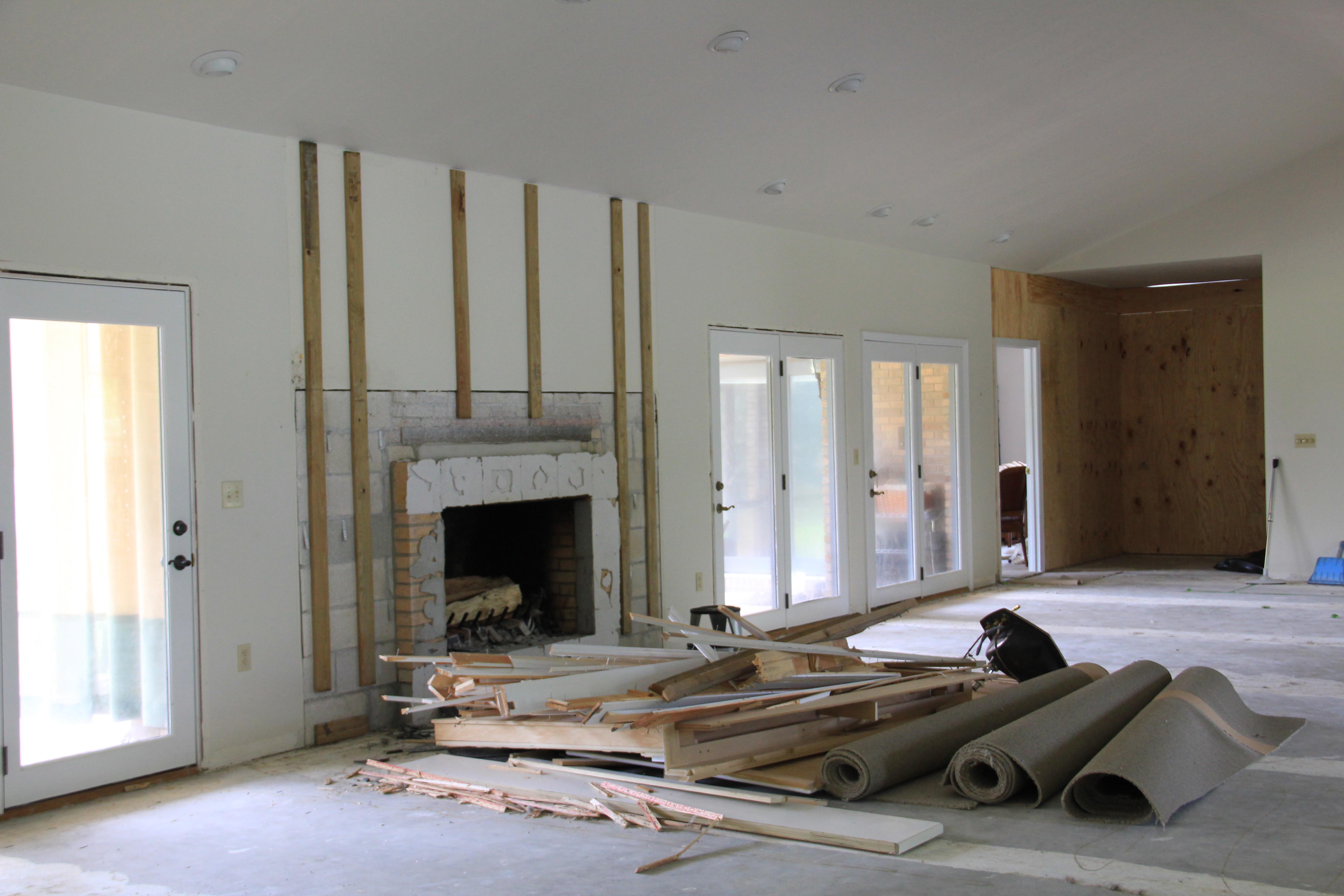 All of the carpet and trim and interior doors have been pulled and the tile will be pounded out this week (again, with great loudness).