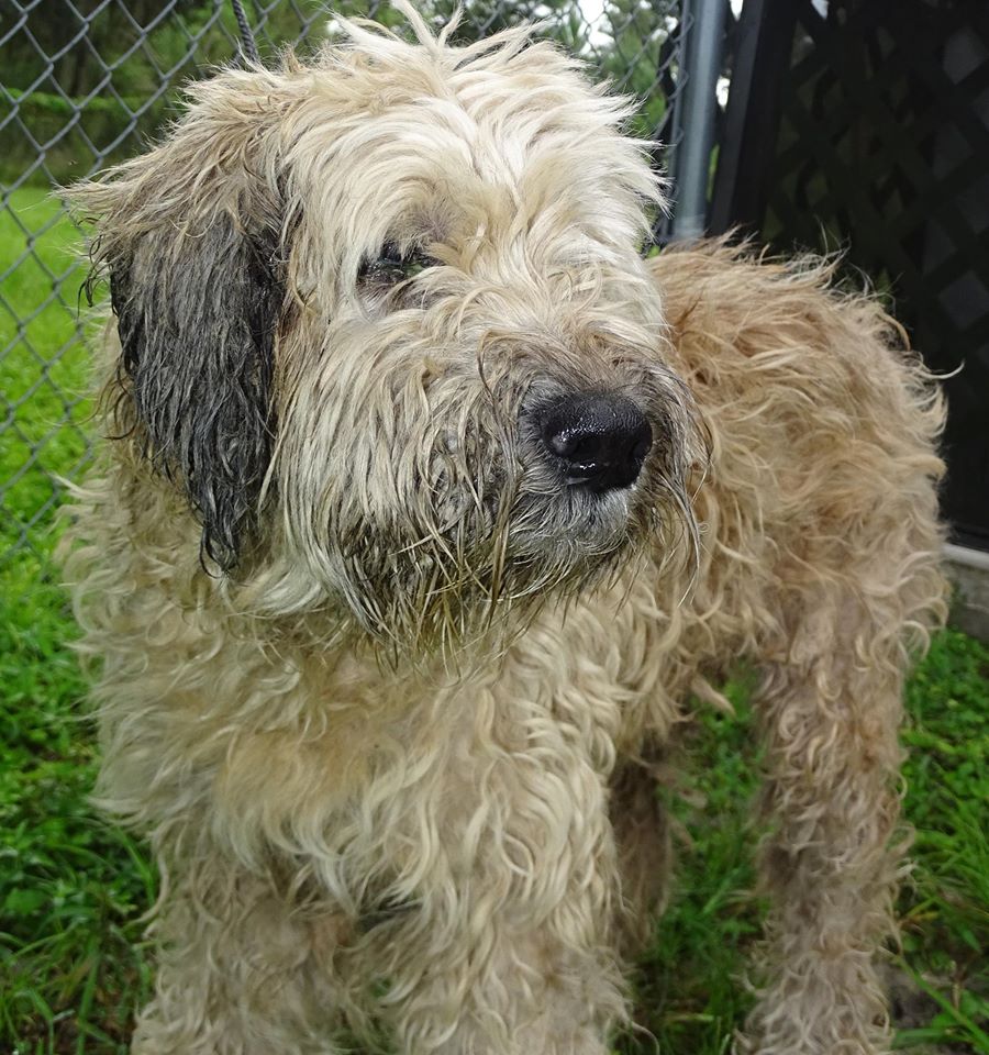 She was brought to a high-kill shelter, because that’s what happens in these cases. Her intake report is catastrophic. But, get this: Even though she didn’t have a microchip or collar, they figured out who owned her. Isn’t that amazing? Wheaten terriers are so unusual in these parts and she’d been around your small town enough that people knew where she used to live.