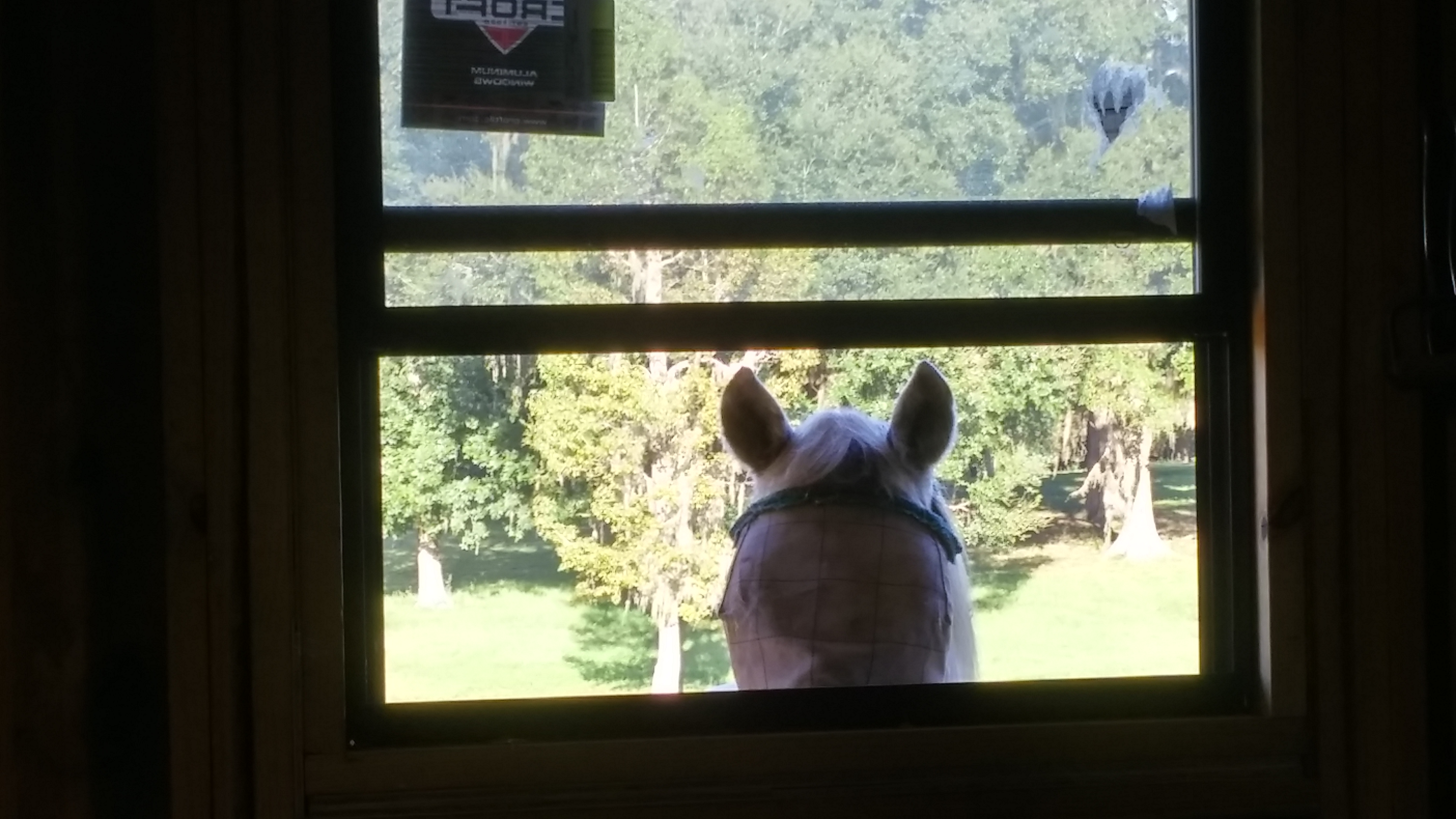 When the three boys, Legs, Beamer and Loosa, come in from the big pasture, it always makes my heart twinge a little. I have had to separate the herd for Filou’s sake and, while everyone has adjusted well enough to the new routine, the boys seem to miss togetherness a bit more than I can bear at times. For meals, I lock the barnyard crew — Andante, Filou, Boo, and Belle — into stalls and then open up the back stall doors and the pasture gate, so the boys can wander in. They are always doing something to get my attention and I am so grateful for that. So, yes, I will reach out the window and scratch an ear.