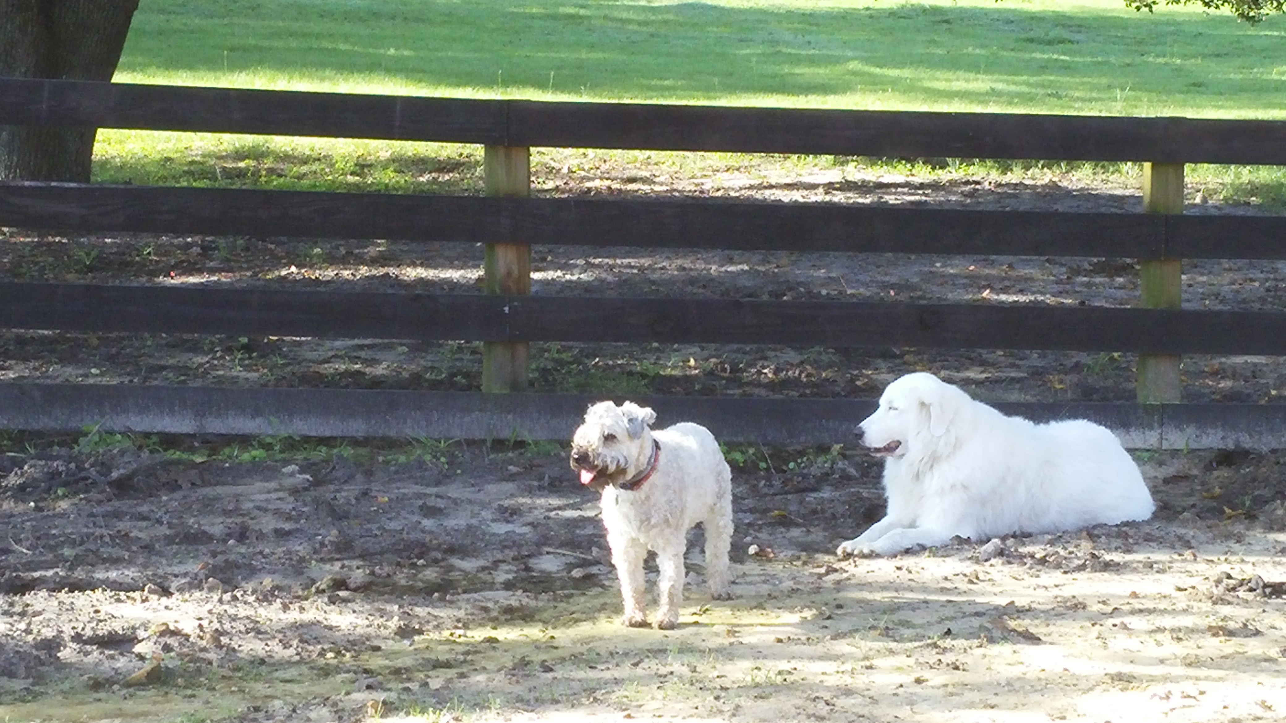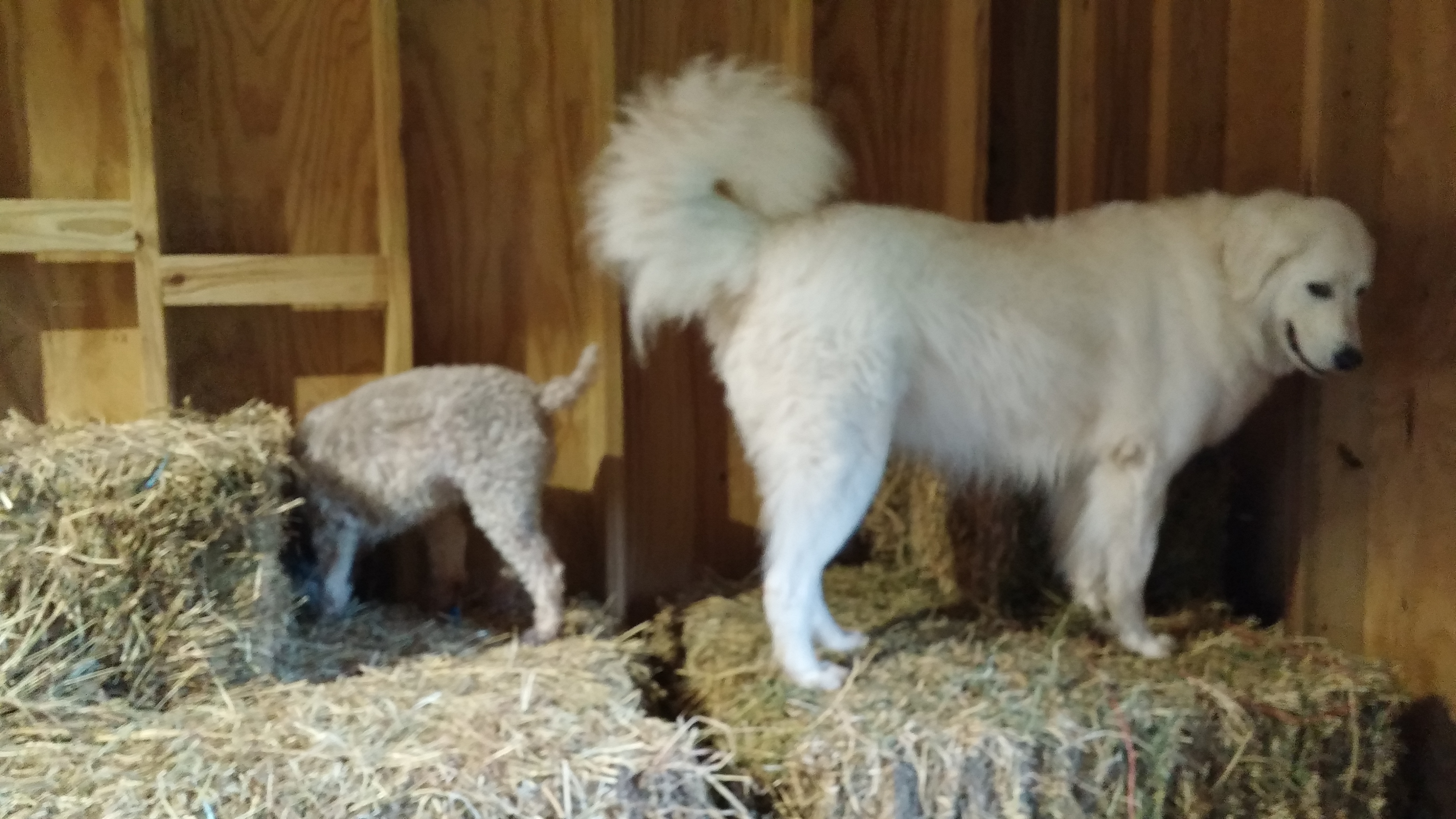 Molly is a wheaten like Monroe and Grace, but if you ask me, she is taking after the maremmas more than anything. She has no fear of the horses or donkeys and will often pull guardian duty. Here she is with Boo. Marco had been laying with Boo while he was eating his breakfast and when I passed by again, Molly had taken Marco’s place. The look on her face tells me she thinks she knows what she is doing. I think you do, too, Miss Molly.