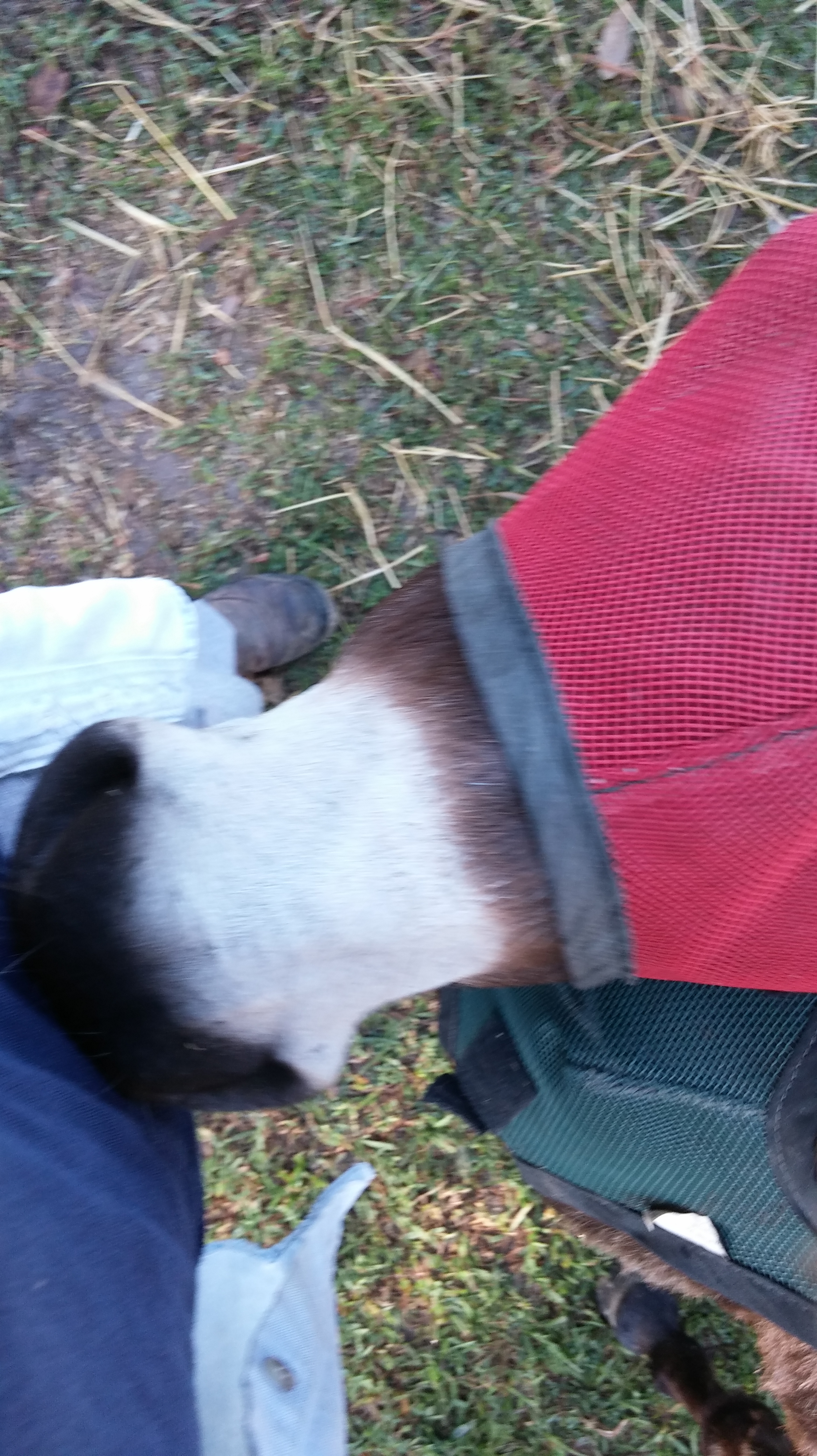 Annie bumped her nose on me — me and my worn chambray shirt — to show me we are in this together.