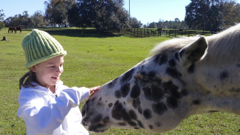 Now that getting over here is a breeze, we can get right down to the proper business of learning about horses and dogs and such things. No uninformed and ignorant children allowed here, no ma’am. This last visit, we were ready to tackle the complexities of being in the space of a big, big animal when you are a wee kid. The horses were in the open pasture and all the while we made our way over to them, I explained how to greet a horse, how to hold your space, that you should stick with me because I know what I am doing, little grasshoppers. The thing is, I’m not the only teacher here. Actually, I’m not even the best teacher. Those horses are. Loosa was first to consider the possibilities tangled up in the meandering, skipping march of our approach. He figured Brooke was a good target and he practically charged her.