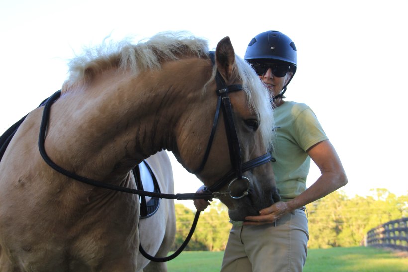 If he wanted to pursue his newfound naughtiness, he would do it against the full weight of himself.  Here are your choices, Auggie: soft and forward will feel good; anything above or below that will annoy you. How you solve that is up to you, but I’m here to help. That was a deep experience for both of us. He was opinionated and frustrated and I stayed neutral. He stood still and I was neutral. He went forward soft and calm and I flowed with him. In and out, back and forth, not all of it pretty. He’s bringing himself into the calm place more quickly and stays longer. He is learning to self-sooth. I need this. I cannot outmuscle a horse for the ride on their back, not my style. I do not want to micromanage that ride — very much my style, but not what is best for partnership.
