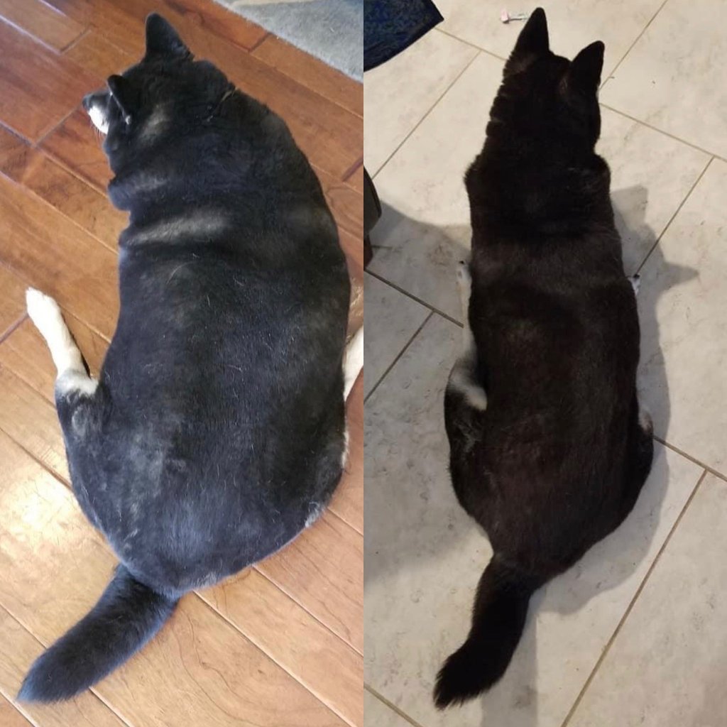 It has been one year since we brought Tootsie home. Today she weighed in at 32.5 which means she is nearly half of her former self.