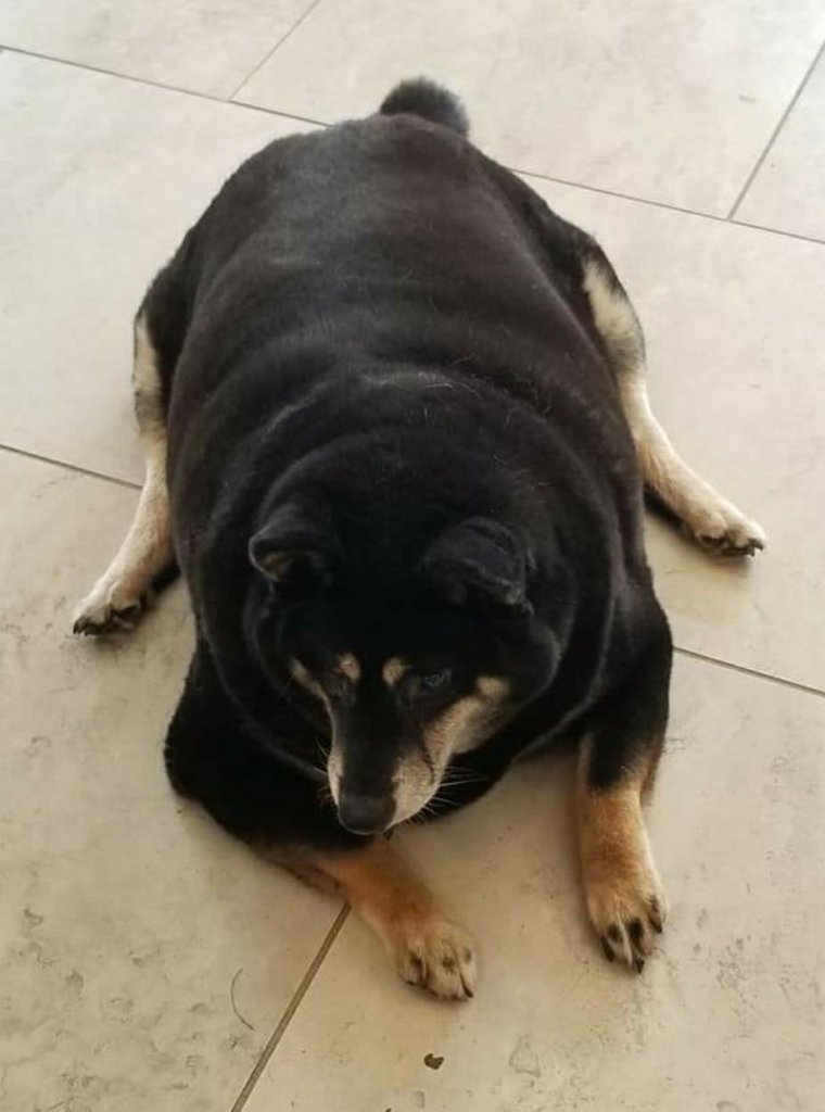 Here’s the deal. Tootsie was fat and not just by a little. Miss Toots is a Shiba Inu and the breed standard states a female would weigh about 25 pounds. Tootsie was not anywhere close to that. On her first day with us, Tootsie weighed in at a lip-smacking 61.50 pounds.