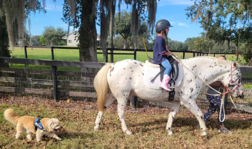 So, I wouldn’t call Loosa a wee little child’s ride; not unsafe, just a bit too much to ask of him maybe? I was protective, but wrong. This weekend, a joyful little girl marched out into the field with me where Loosa separated himself from the herd, nuzzled up to her, and said “hey, kid, you and I should go for a ride”. He was kind and gentle with her. Lowered head, soft eye and lips, he let her bounce and show her excitement about riding him without a quiver of concern. He walked slowly, trotted carefully, and willingly took her directions for turning. I just held the rope.