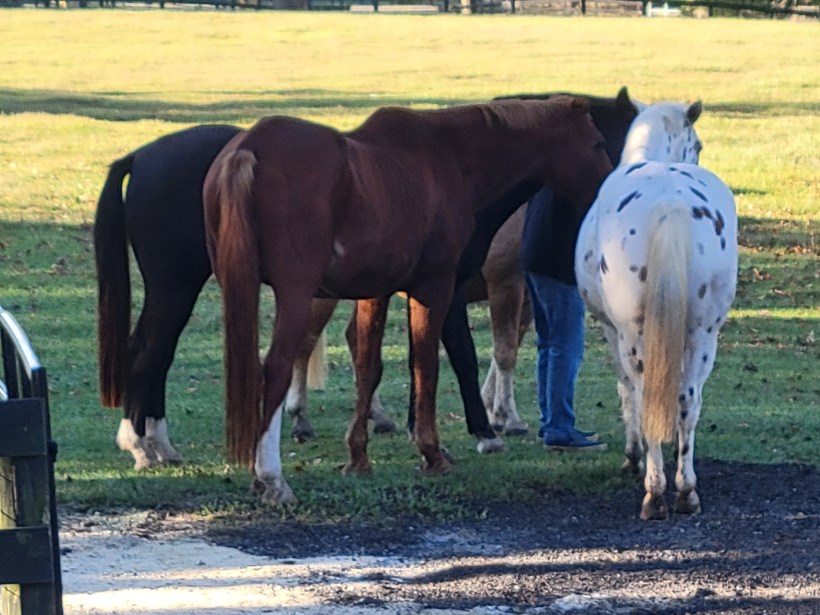 Mornings start at the barn. The big horses have been out in the pasture for the night and the little ones have been roaming the barnyard. I open the gate and ask everyone to find a stall. Once secured, grain happens and that makes everyone happy in their decision to cooperate. Eventually, it is time to go back out again. Now, I open stall doors and ask each horse in turn to go outside which means scoot yourself on down through that gate and stay there until everyone has arrived. It is a requirement and also a game. Horses are smart about games. Today, instead of me arriving after the last of them had landed to give them a last snuggle and treat and to close the gate, Gordy was waiting for them to join him. They love that game the most. He is happy to reward them once, twice, until the treats run out. They are happy to share space with him and with each other, keeping their muzzles deep in treat territory, while carefully aligning their bodies like spokes on a wheel to avoid conflict. This is kindness, well practiced. Humans are fragile things compared to the impact a horse can weld. The kindness is in their understanding of the need to hold a space while being deeply engaged in it so that no one gets hurt. Everyone is rewarded. My reward was in the watching.