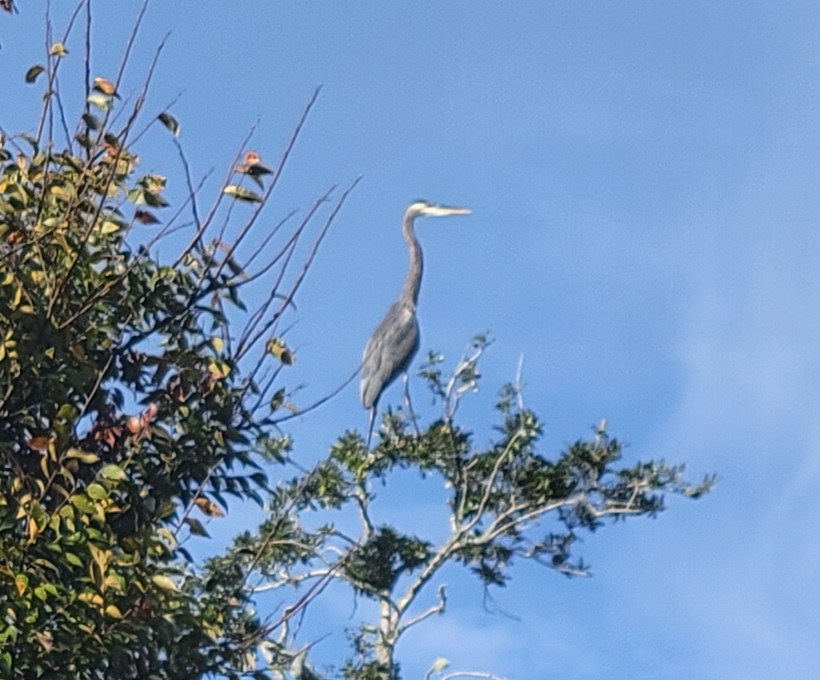 That big blue heron sitting high in my backyard tree is the protagonist in today’s view on kindness. We live in his territory and for most of the year he uses the pond in the back pasture as home base. He has no fear of the horses and not much for the dogs, dawdling on the ground until the last possible minute of their wild chases before setting flight. I respect him in all his territorial glory. I admire the beauty of his great wingspan and his haughty walk. But then his eye starts to roam and things get difficult between us. It starts with stalking which is what he is doing right now from that backyard tree. He is scoping out the koi pond. More specifically, he is scoping out the koi IN the pond. The first year this happened, I was shocked. Shocked! He seems so contented with his choices in the pasture, never once showing an interest in my captive little beauties. I think it is a change of season thing; maybe some deep instinct in the fall to fatten up for the winter. The koi are not easy pickings for him because the pond is so small and there is not a perfect flight pattern. That doesn’t stop him from stalking though, right up to the pond’s edge or to the top of the waterfall.