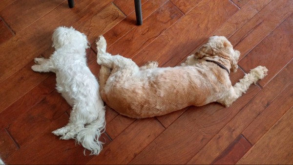 Bruno had an emergency last night. A piece of a treat lodged in his throat and he woke us up,